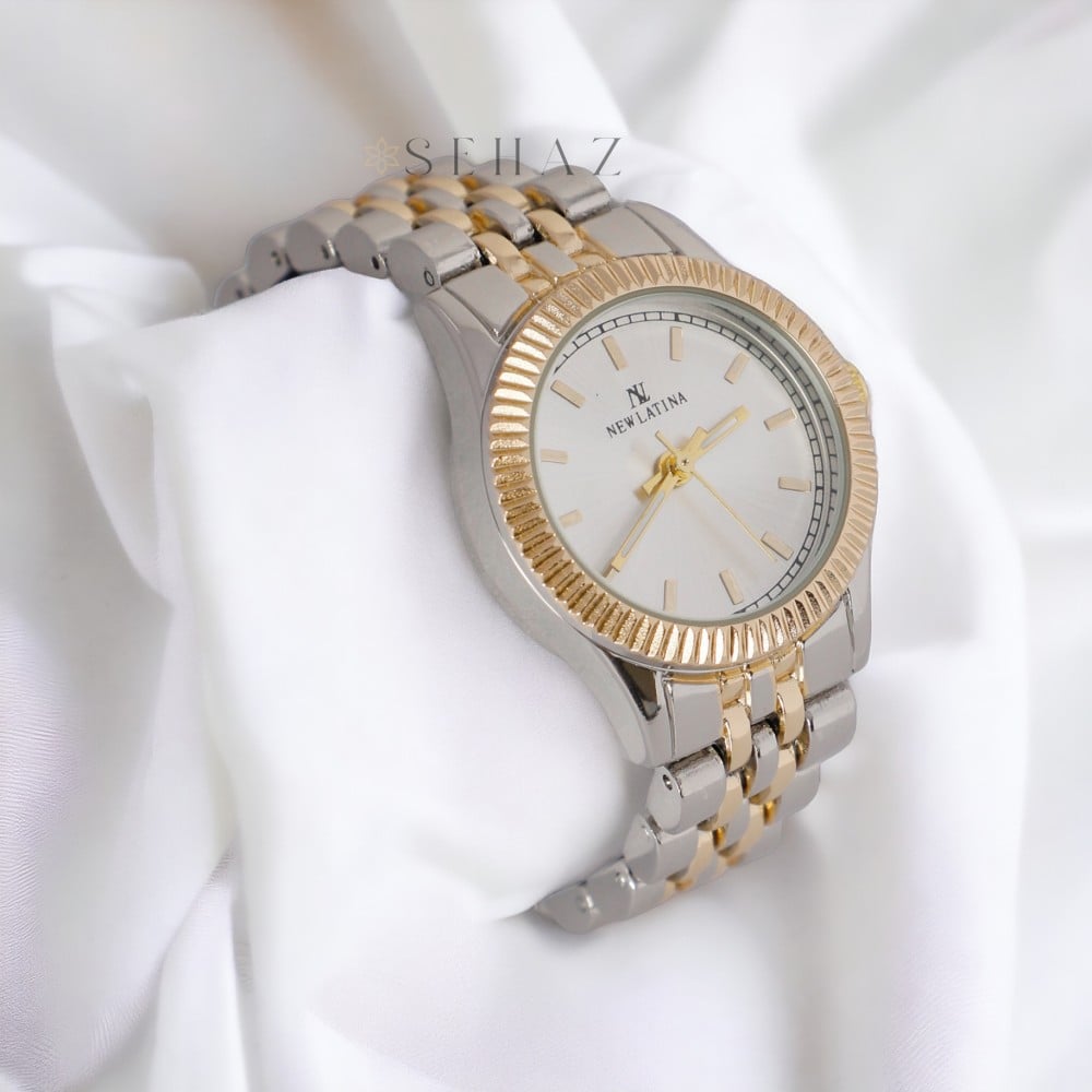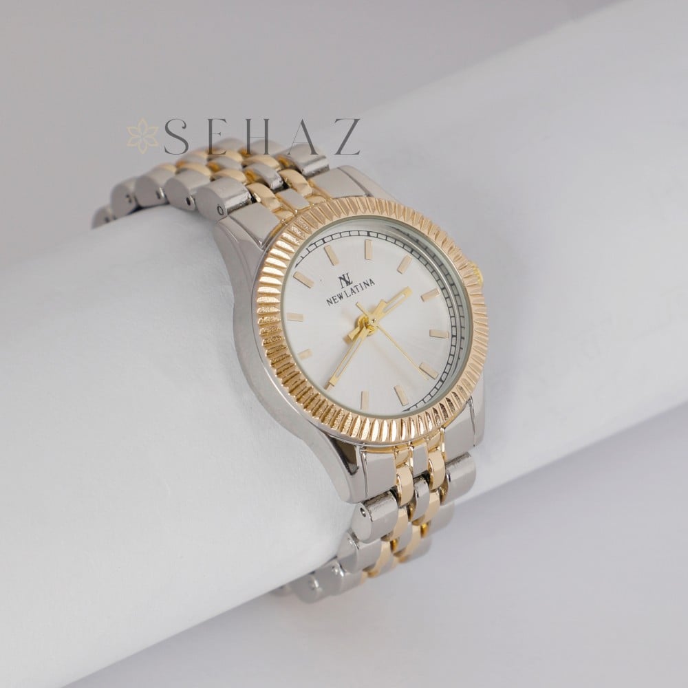 ساعة اطفال مكس ذهبي فضي مينا ابيض متوفر من ٤ سنوات الى سنه ١٤