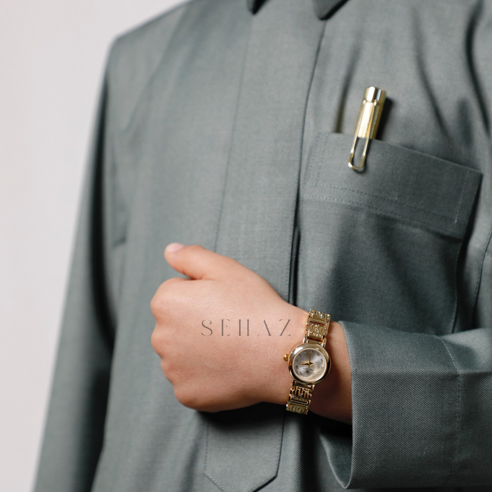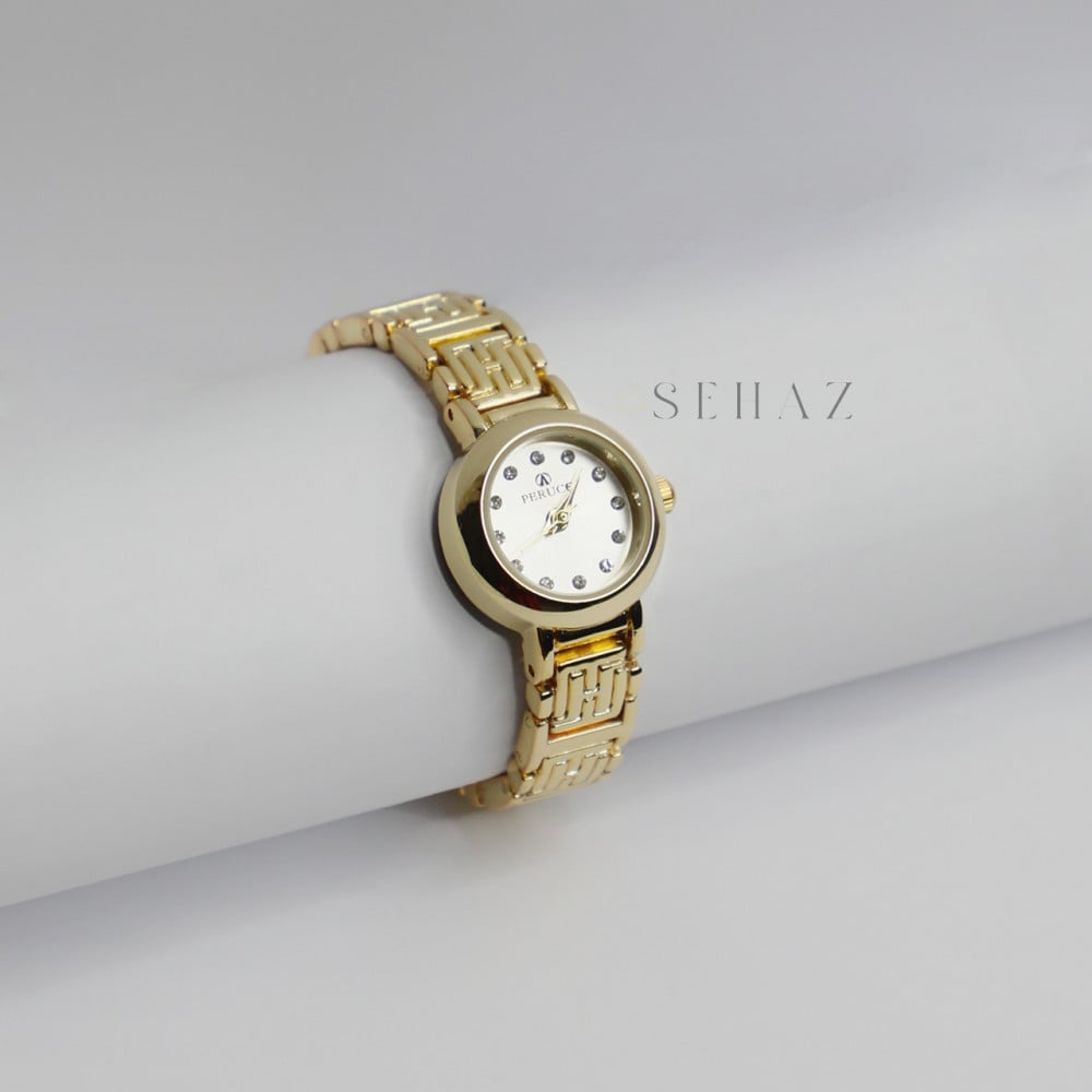 ساعة ذهبي مينا ابيض باطار دائري ذهبي من عمر4 سنوات الى 5 سنوات