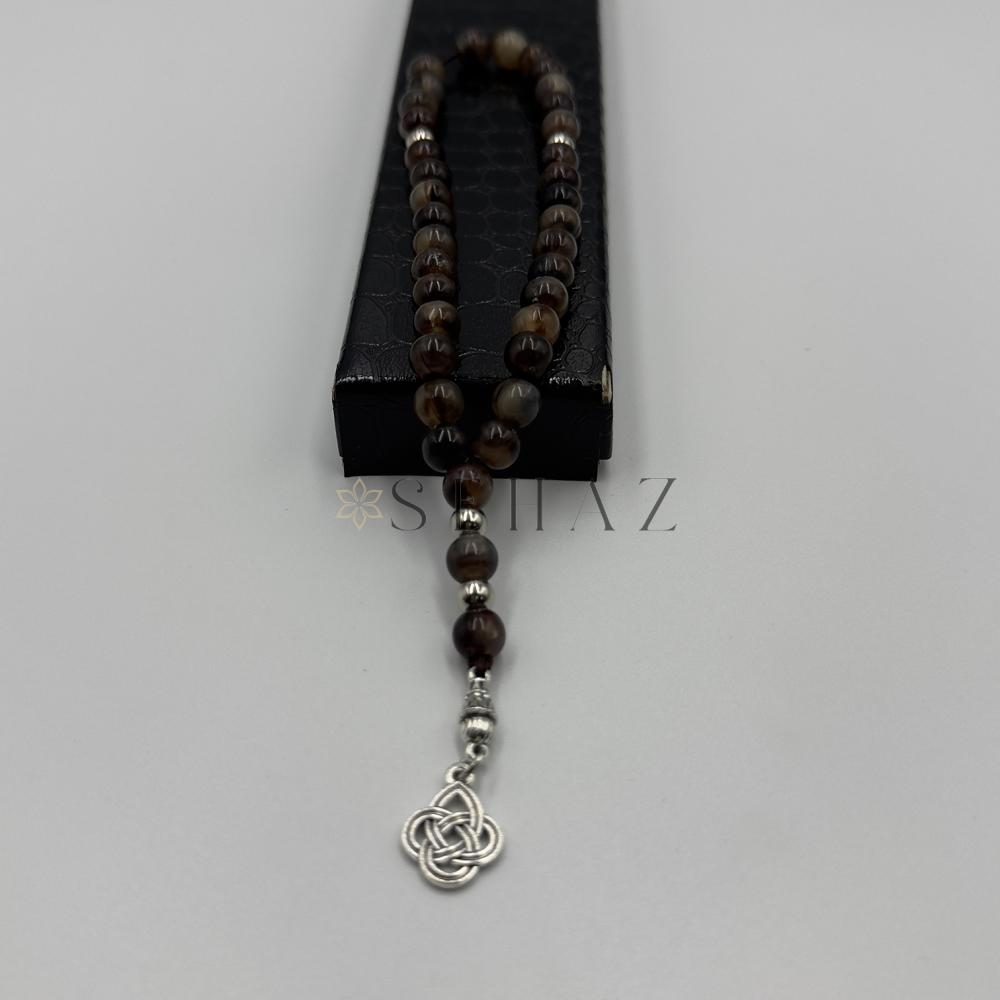 سبحة فاخرة بحبات بلون عين النمر البني مناسبة للاطفال من عمر شهر الي 5 سنوات