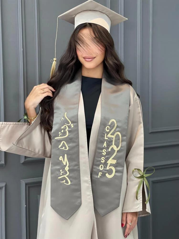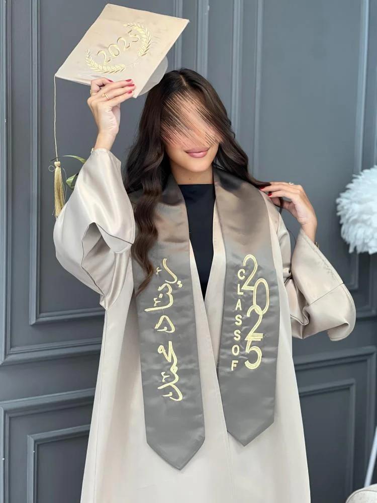 ✅ وشاح وقبعة تخرج مطرزين تحمل اسمكِ وسنة التخرج